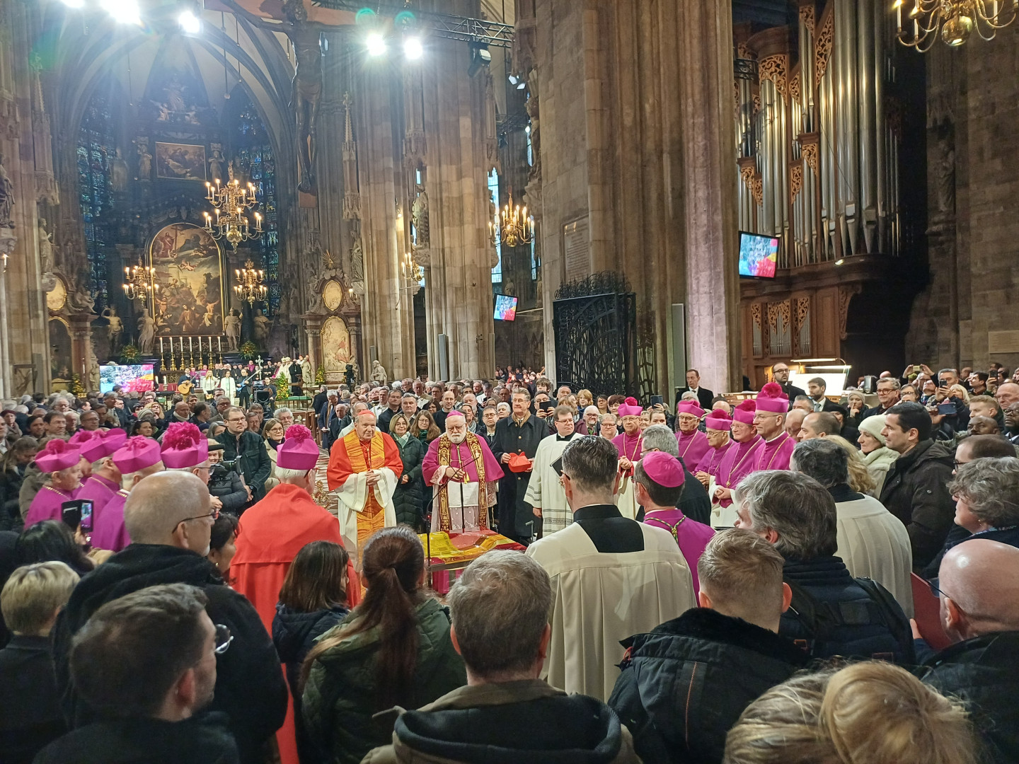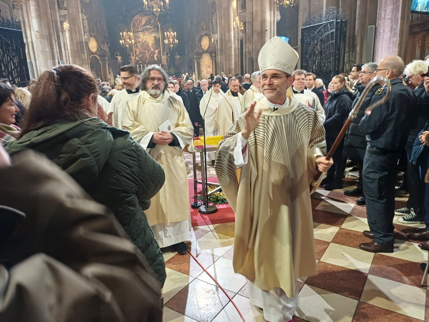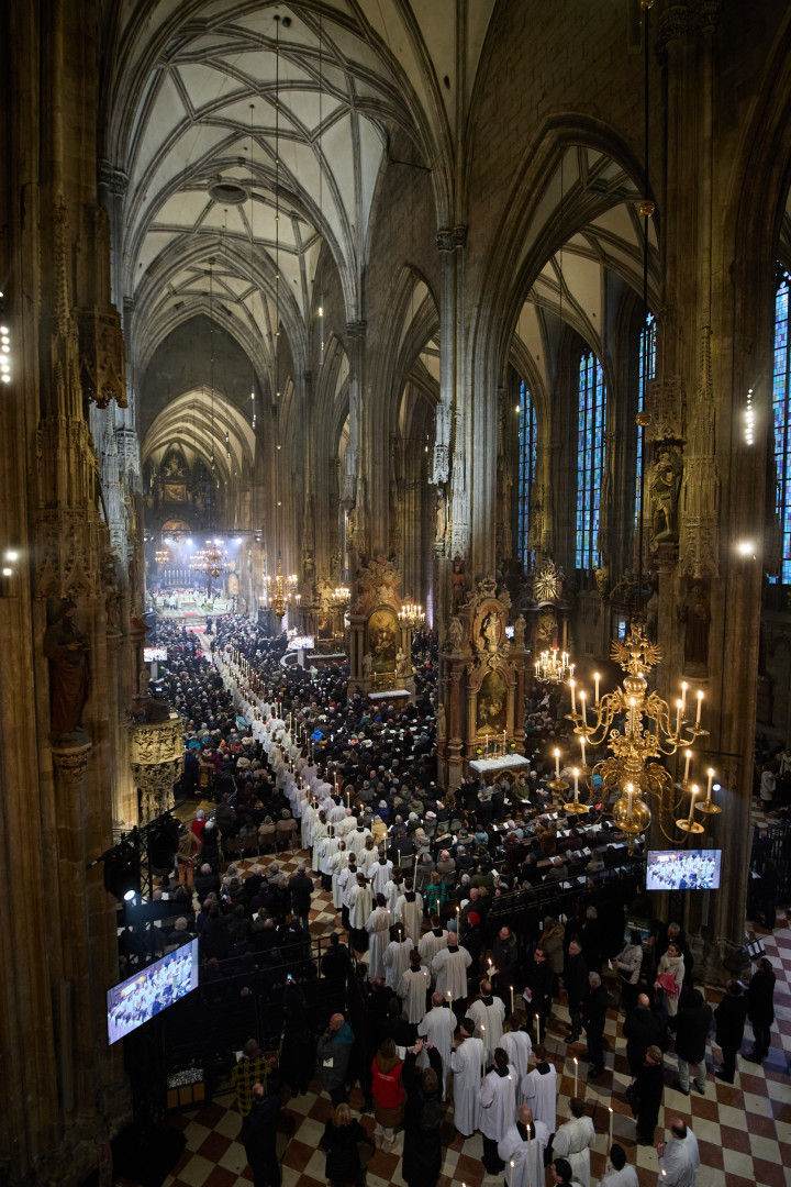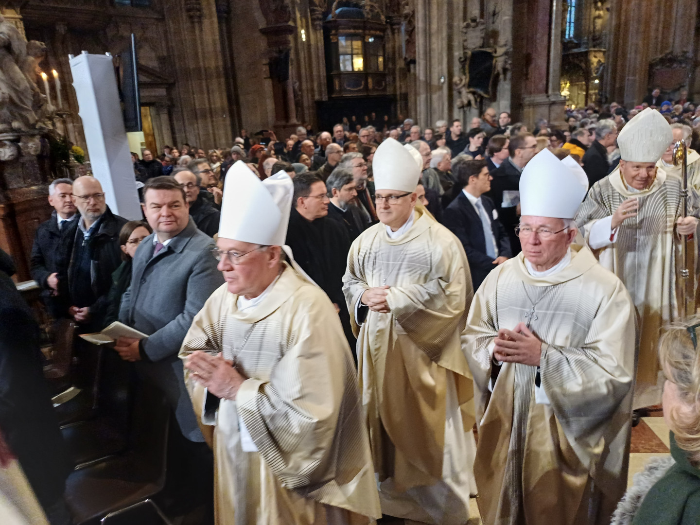 Kardinál Schönborn na úvod přivítal prezidenta Alexandra Van der Bellena, zástupce veřejné správy i hosty z řad biskupů a duchovních – a to také z jiných církví i náboženství. Zvlášť se obrátil i na „spolusvětitele z mé rodné diecéze, Stanislava Přibyla“.
