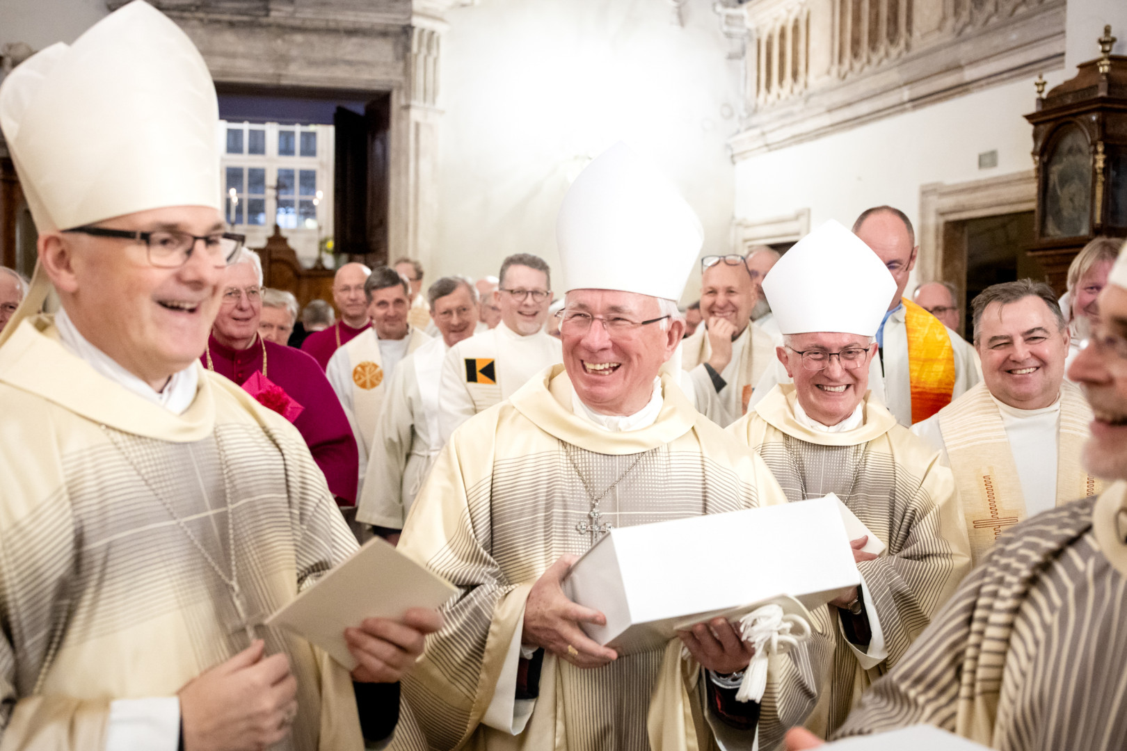 V liturgickém průvodu pak s novým arcibiskupem přišli vedle biskupů z Rakouska, z Evropy i ze zámoří také hlavní světitel, dominikán Christoph Schönborn (rodák z litoměřické diecéze) a dva spolusvětitelé Franz Lackner OFM, předseda Rakouské biskupské konference a salzburský arcibiskup, primas Germánie (jak zní jeho historický titul) a litoměřický biskup, redemptorista Stanislav Přibyl. Ke svěcení Josefa Grünwidla se tedy sešli tři řeholníci: dominikán, františkán a redemptorista.