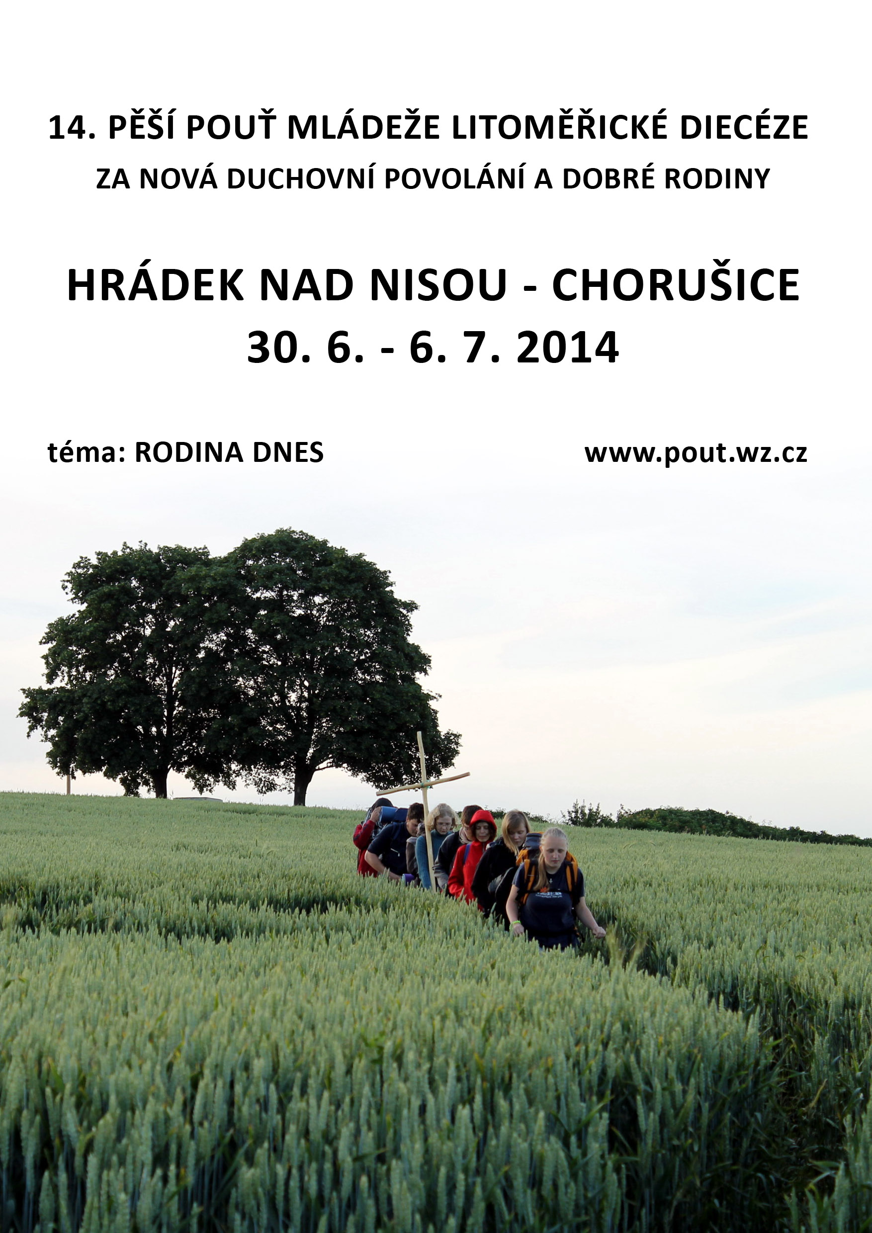 Čtrnáctá diecézní pěší pouť mládeže litoměřické diecéze za nová duchovní povolání a dobré rodiny se uskuteční ve dnech 30. června - 6. července 2014. Letos půjdou mladí poutníci z Hrádku nad Nisou do Chorušic.