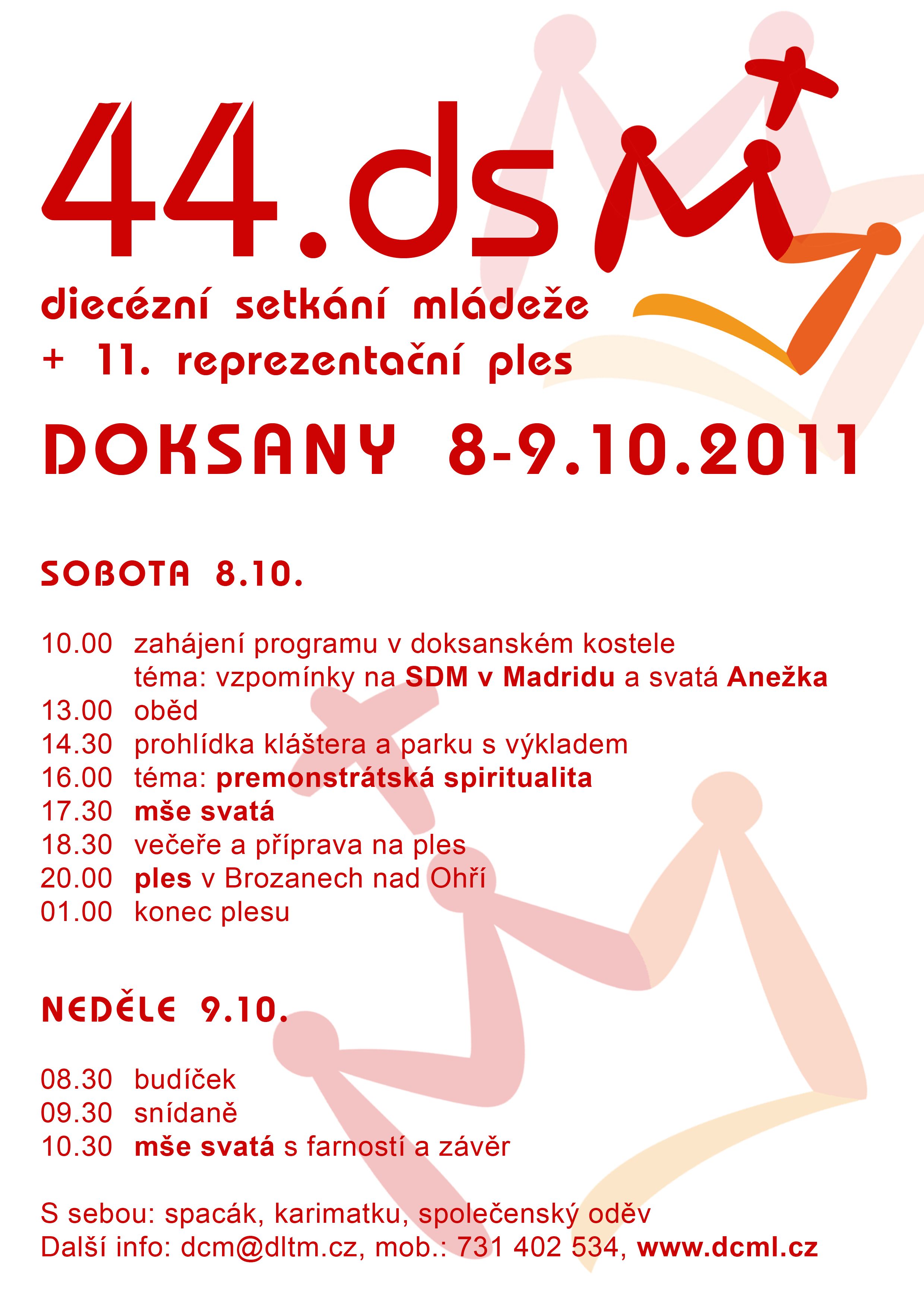 44. diecézní setkání mládeže a zároveň 11. reprezentační ples v Doksanech bude ve dnech 8. – 9. října 2011.