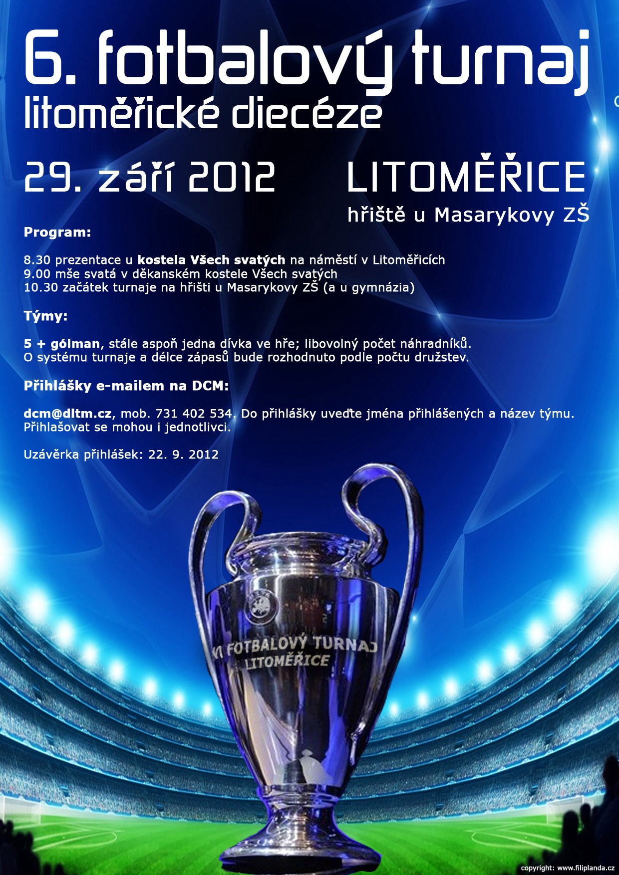 Diecézní centrum pro mládež pořádá v sobotu 29. září 2012 6. fotbalový turnaj litoměřické diecéze.
