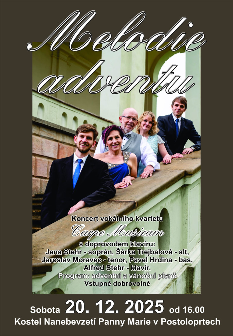 Koncert vokálního kvartetu Carpe Musicam s doprovodem klavíru:
