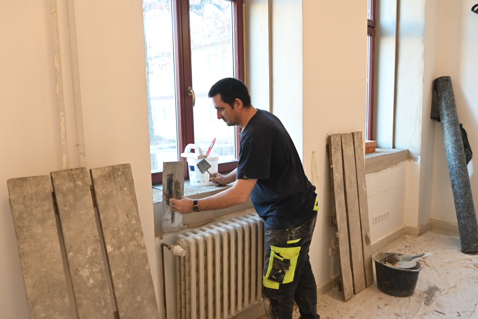 Rozlehlý objekt postupně dostává zateplení, novou fasádu a mění se na etapy stará okna. „Šetříme kde se dá,“ vysvětluje Richard Kirbs, ředitel společnosti InPrincipio, s. r. o., která patří litoměřickému biskupství a dům spravuje. Podařilo se jí získat finance z operačního programu Evropské unie Technologie a aplikace pro konkurenceschopnost (OP TAK). „Umožní nám ušetřit řádově pětinu nákladů na elektřinu i topení, protože součástí této akce je i vybudování fotovoltaické elektrárny na střeše,“ přibližuje ředitel. Jak říká stavbě se bude muset v příštích týdnech i nadále přizpůsobit rezervace ubytování a harmonogram akcí, které zde probíhají. „Je to zejména kvůli výměně oken, která se ukazuje složitější, než jsme čekali. Stará špaletová okna nahrazují jednoduchá, která mnohem lépe izolují. Na řadě míst jsme pak museli otvor dozdívat, zatěsňovat a štukovat. Zároveň se rovnou maluje i celá místnost, což nejde tak rychle,“ popisuje Richard Kirbs.