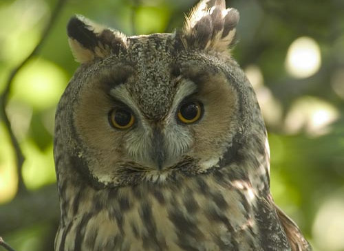 Ve větvích jehličnanů za věží se podle zjištění odborníků i ochránců přírody nyní zdržuje kalous ušatý.