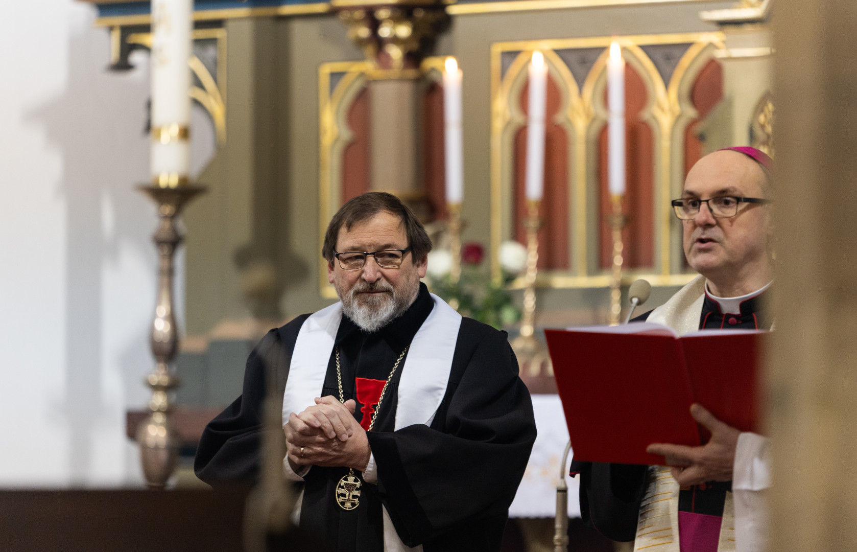 Patriarcha Československé církve husitské Tomáš Butta připomněl náboženskou rozmanitost města, včetně skutečnosti, že se ve zdejších utrakvistických chrámech v minulosti kázalo i německy. K bolestné trhlině mezi Čechy a Němci podle jeho slov došlo až v čase druhé světové války a po ní. „Pohled hluboké křesťanské víry se dokáže vypořádávat s nepochopitelnými záležitostmi světa a jeho temnými stránkami. V Ježíši je smířeno všechno, co jest, jak píše apoštol Pavel Kolosanům. Je to naše společné vyznání naděje: Kristus je zdrojem smíření mezi církvemi i národy. Role církví a jejich představitelů není v ponoukání k nesnášenlivosti, ale naopak mají být hlasem pokojného řešení a hledání hojivé a obnovující moci Kristovy lásky. Smíření znamená, že pokoj a mír vstupuje do nás samých a přenáší se pak do vztahů,“ řekl Tomáš Butta a ocenil, že biskup Stanislav v této době „plné napětí neshod a konfliktu, přichází s biblickým poselstvím smíření“. „Je to hluboké a široké poselství, niterně duchovní a současně praktické, které se týká našeho každodenního života,“ poukázal patriarcha s tím, že to není nijak abstraktní nebo historické téma.
