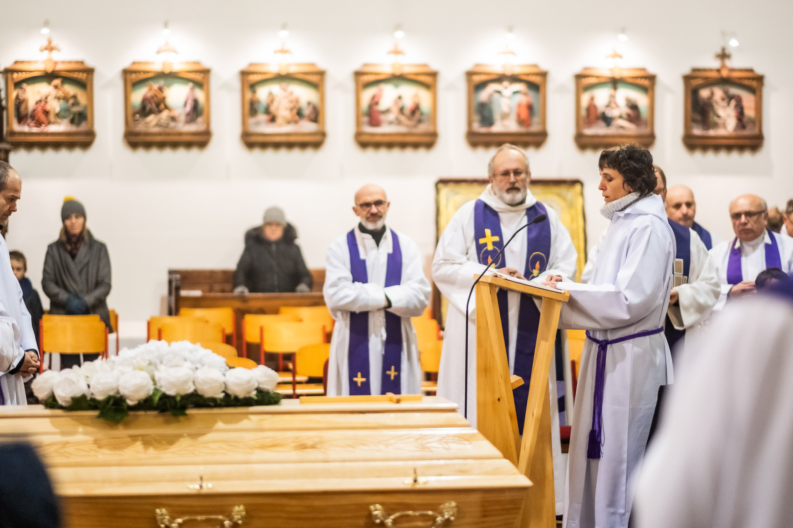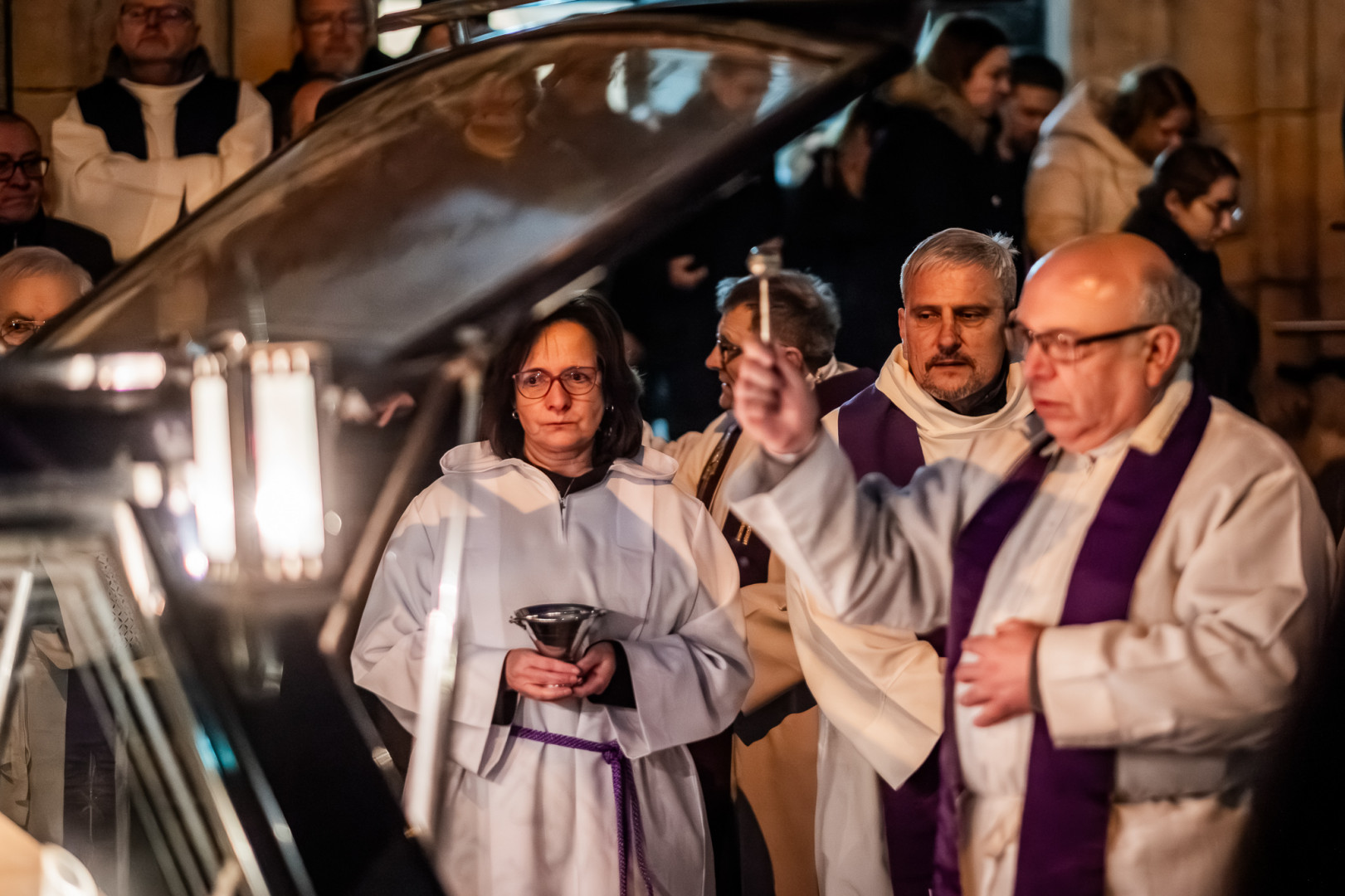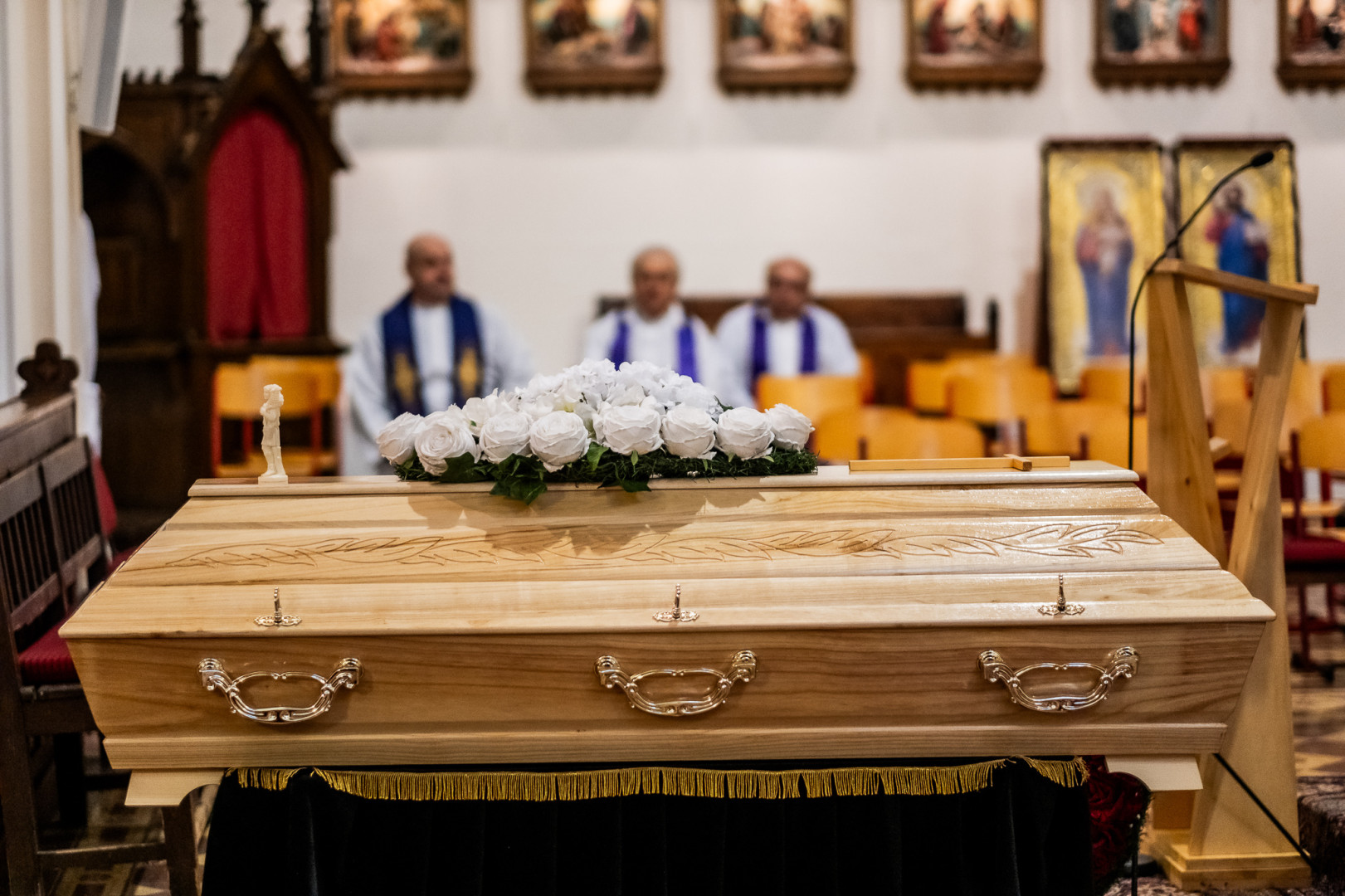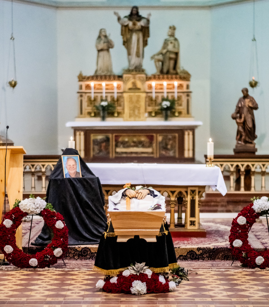 Po obřadech posledního rozloučení vynesli rakev Vojtěcha Glogara spolubratři z teplické komunity z kostela, aby mohla být převezena k pohřbu do Zlína.