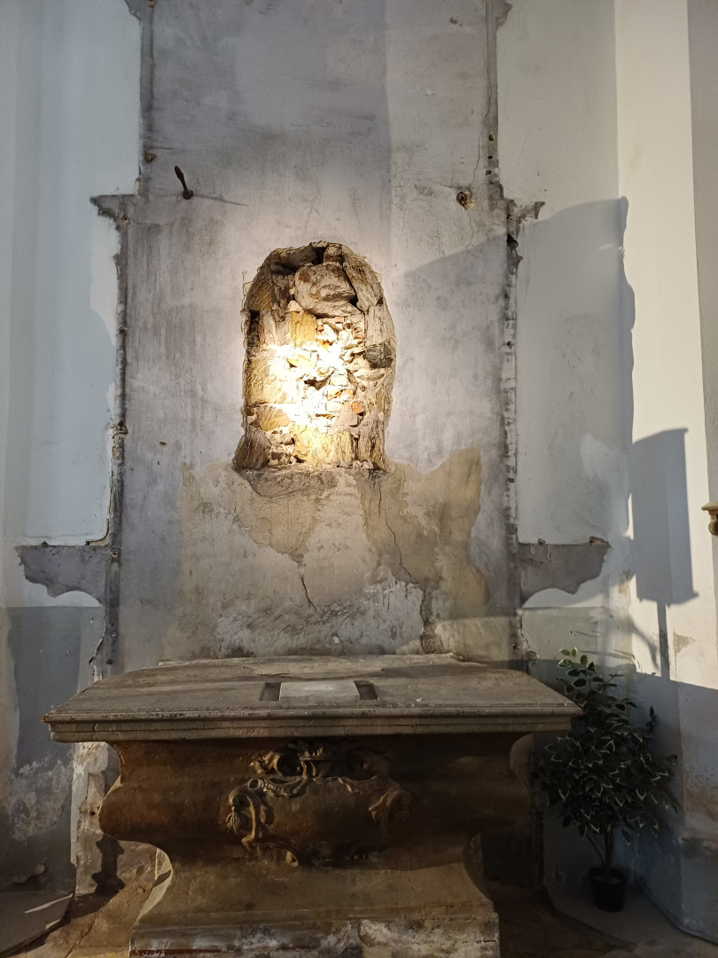 Na místě bočního oltáře je nyní holá zeď a díra, respektive výklenek, před kterým stál v současnosti restaurovaný mobiliář s původní sochou světce, kterého z kostela před lety ukradl neznámý zloděj. „Nikdy jsem se nepídil, kdo a kdy původní sochu ukradl. Na tom místě jsme měli sochu sv. Terezičky. A když se začal ten oltář opravovat, což děláme už asi tři roky, protože to stojí spoustu peněz, tak nás napadlo nějakou sochu patrona zamilovaných pořídit. Nejdřív jsme mysleli, že uděláme dřevěnou. Naproti žije umělecký řezbář, ale pak jsme se shodli na tom, že by bylo pěkné, díky tomu, že jen kousek od Cvikova máme Křišťanový chrám, že řekněme sklářům, že budeme mít skleněného Valentina,“ popsal místní duchovní správce P. Rudolf Repka. Jak doplnil, farnost se rozhodla vnést do chrámového interiéru současné umění. „Zdeněk Kudláček nabídl, že nebude dělat klasickou vitráž, jak ji známe z kostelních oken, ale takzvanou sandwichovou plastiku, což jsou pláty skla naskládané na sebe a ty jsou vyřezané do tvarů, takže to pak vytvoří plastiku. Vypadá to moc krásně a dá se tam dobře pracovat detailem,“ popsal P. Repka. Pro budoucí generace tak chce také vyjádřit, že socha byla ukradena a že nové dílo ji má nikoliv napodobit, ale nahradit.