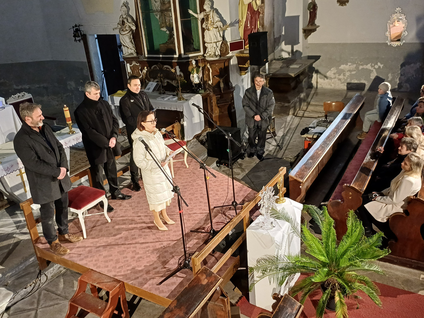Při benefičním koncertu a představení záměru pak vystoupila patronka projektu Milena Steinmasslová. Do lavic usedli také donátoři, jejichž počet se po jeho skončení rozrostl ze tří na deset. Cílový počet čtrnácti dárců, jejichž úkolem je přispět částkou sedmi tisíc korun se již během několika desítek hodin po skončení akce podařilo dosáhnout. „Další prostředky budeme směřovat do sbírky na rekonstrukci rozvodů elektřiny, kterou vyhlásil P. Repka,“ uvedl David Sobotka. Tu kněz nazval „Světlo pro sv. Valentina“. „Sklo potřebuje světlo a bude nutné plastiku prosvětlit, chystáme zároveň i rekonstrukci elektroinstalace, která dosluhuje. Když jsem totiž hledal možnosti, jak za oltář dovést elektřinu, zjistil jsem, že instalace je stará nejméně padesát let a hrozí, že by napříště nemusela projít revizí,“ povzbudil přítomné, když avizoval, že náklady na tak rozsáhlou opravu dosáhnou k jednomu milionu korun. Zároveň také poděkoval za ochotu, spolupráci a podporu místnímu starostovi Petru Vrabcovi a dalším podporovatelům života farností v jeho duchovní správě.